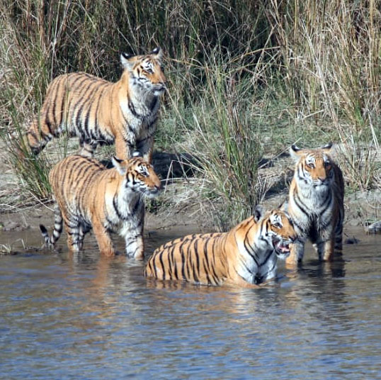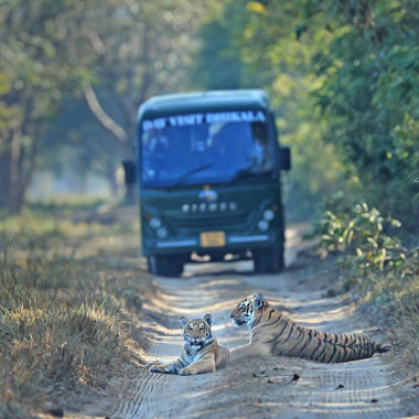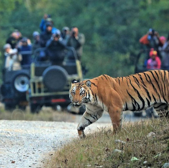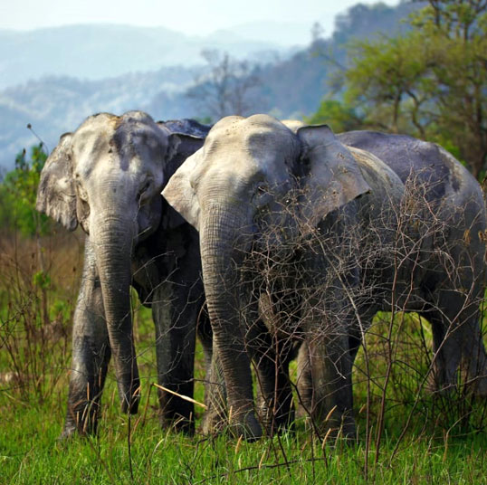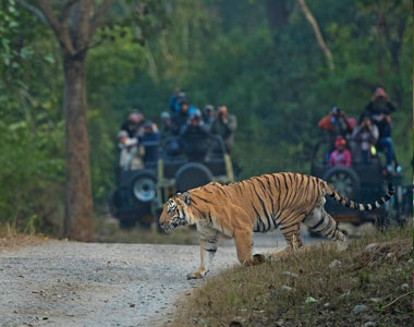Spans over an extent of 520 square kilometers, its whole area comprises of hills, marshy depressions, riverine belts, grasslands and large lake. It is among the few tiger reserves in India that allows overnight stays in the lap of the National Park. Nature watch and wildlife viewing in the park is done in an open four wheeler Jeep and on elephant back. Sheltering a healthy population of tigers and rare species like Otters and the endemic fish eating crocodile, the national park is one of the most sought after destinations for the wildlife buffs. Dhikala, situated at the border of the extensive Patil Dun valley, is the most popular destination in Corbett because of its superb location and sheer abundance of wildlife present.